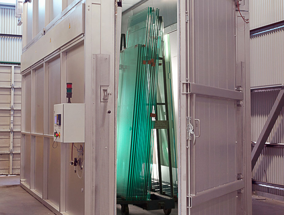 Hot dip treatment is also known as homogeneous treatment, commonly known as "detonation". Hot dip treatment is to heat the tempered glass to 290°C±10°C, and keep the temperature for a certain time, to promote the rapid crystal phase transformation of nickel sulfide in the tempered glass, so that the originally used after the possible self-detonation of the tempered glass artificially broken in advance in the factory of the hot dip furnace, so as to reduce the use of the tempered glass self-detonation after installation. The method generally uses hot air as the heating medium, known as the "HeatSoak Test", HST for short, literal translation is hot soak treatment.